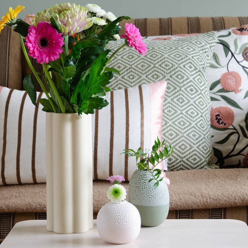 Sfeer in huis creëer je onder andere met bloemen, met deze prachtige vaas van keramiek krijg je dat zeker voor elkaar. Leuk om te combineren met andere vazen. Al onze vazen zijn handgemaakt waardoor er kleine verschillen mogelijk zijn.